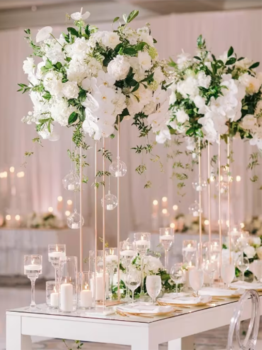 Florals and decor for your special day. Fresh flowers for table centerpieces, church, outdoor ceremony, sweetheart table, and silk flowers for arches, venue decor, and accessories for rental including installation and removal.