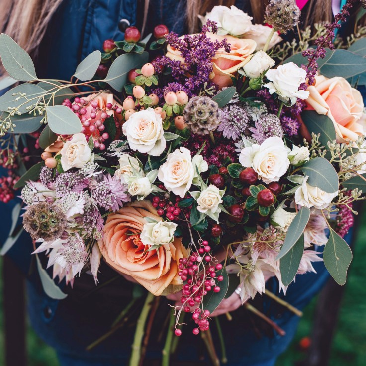 Bridal bouquet, bride’s maids and moms corsages, ushers and dad’s boutonniere, flower girl basket.